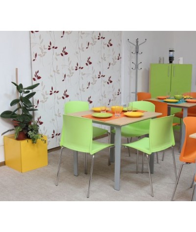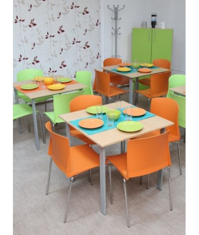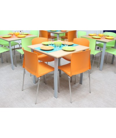 Este un produs ce poate fi utilizat pentru dotarea spațiilor tip cantină, săli de mese din școli, internate sau alte instituții. Masa are durabilitate în timp, fiind compusă dintr-un schelet metalic rezistent, vopsit în câmp electrostatic, prevăzut cu tălpi antiderapante la picioare.