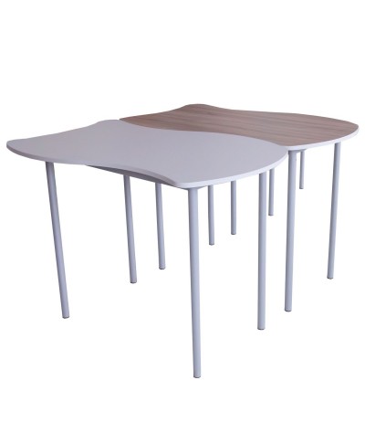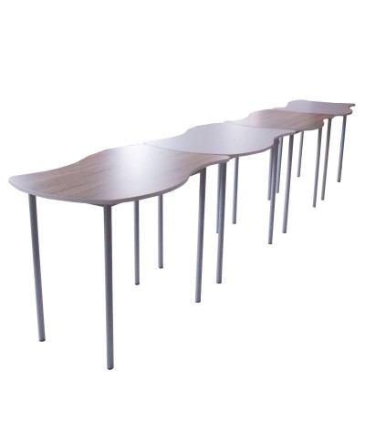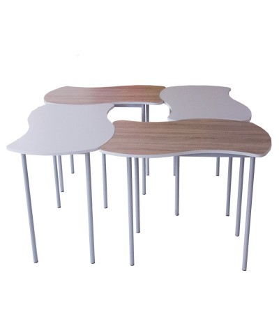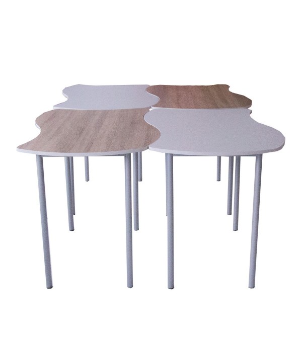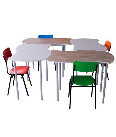 Design Puzzle. Marginea mesei este creată într-un stil inovator, cu valuri de tip puzzle, aducând un element de joc și creativitate în sala de clasă.