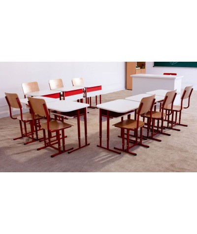 Pupitrele şi scaunele şcolare au posibilitate de reglare în trei trepte de înălțime cu scule de mână uzuale (chei fixe, șurubelniță);