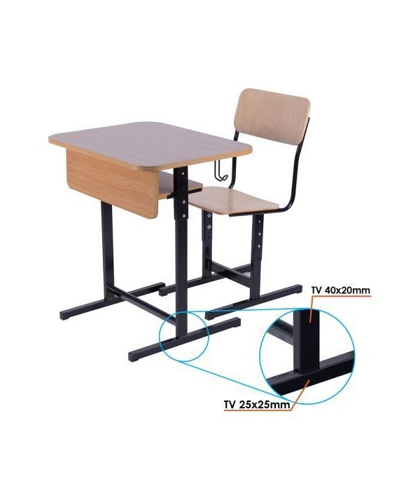 Pupitrele şi scaunele şcolare au posibilitate de reglare în trei trepte de înălțime cu scule de mână uzuale (chei fixe, șurubelniță)